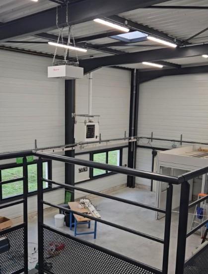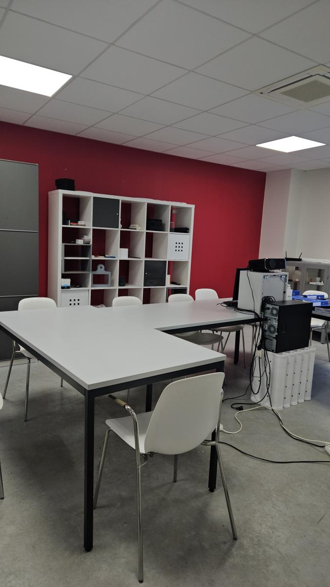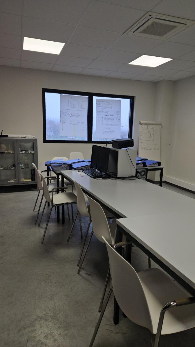 Au rez-de-chaussée : une entrée - un bureau - un atelier - les sanitaires - une pièce de stockage - deux pièces - un local - un laboratoire